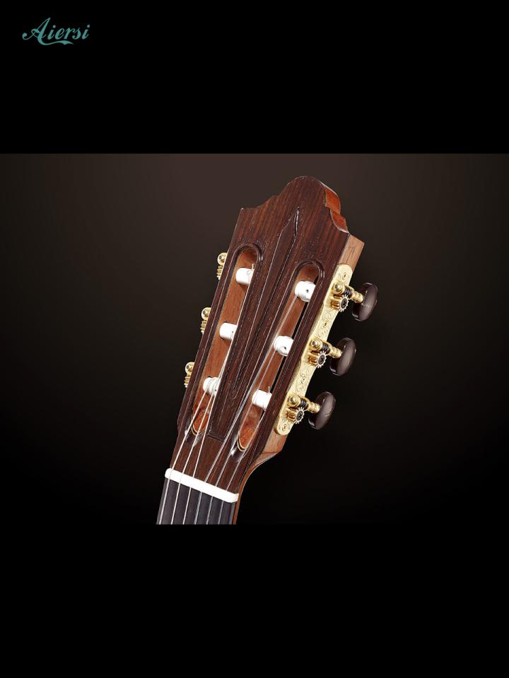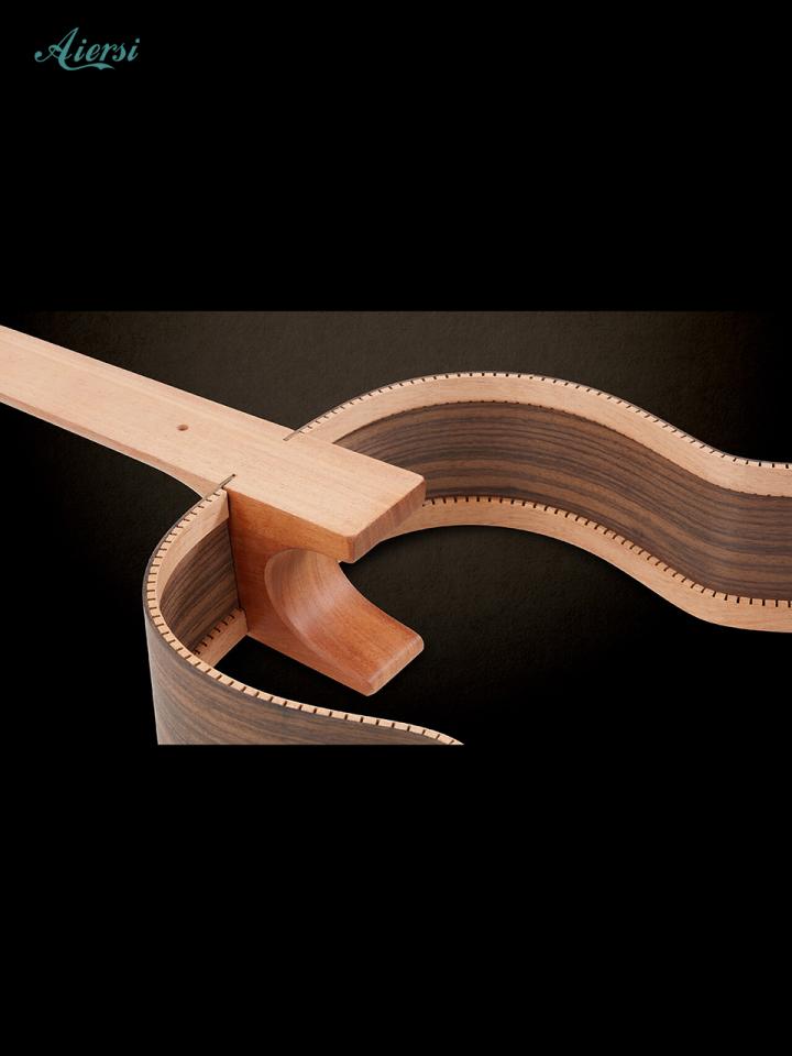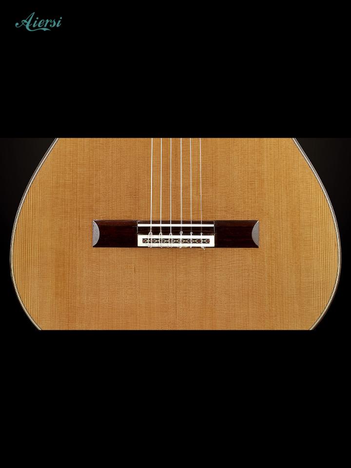 Aiersiのフレドリッシュモデルのトップ材は雪のように白い外観と、まっすぐで緻密な木目が特徴のマスターカナディアンシダーを使用し、バックとサイドの木材には豊かな高音と豊かな低音を実現するインディアンローズウッドを使用しました。