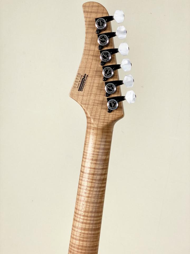 ネックシェイプは定番のわずかに頂点を感じられるソフトVに300Rの指板ラディアス採用でどのポジションでも弾き心地は抜群。細く高さのあるジェスカー製ステンレスフレットを採用することで、抜けの良い高音域の響きをプラス。ハードウェア類は耐久性とチューニングの安定性に優れたGotoh製で統一しております。
