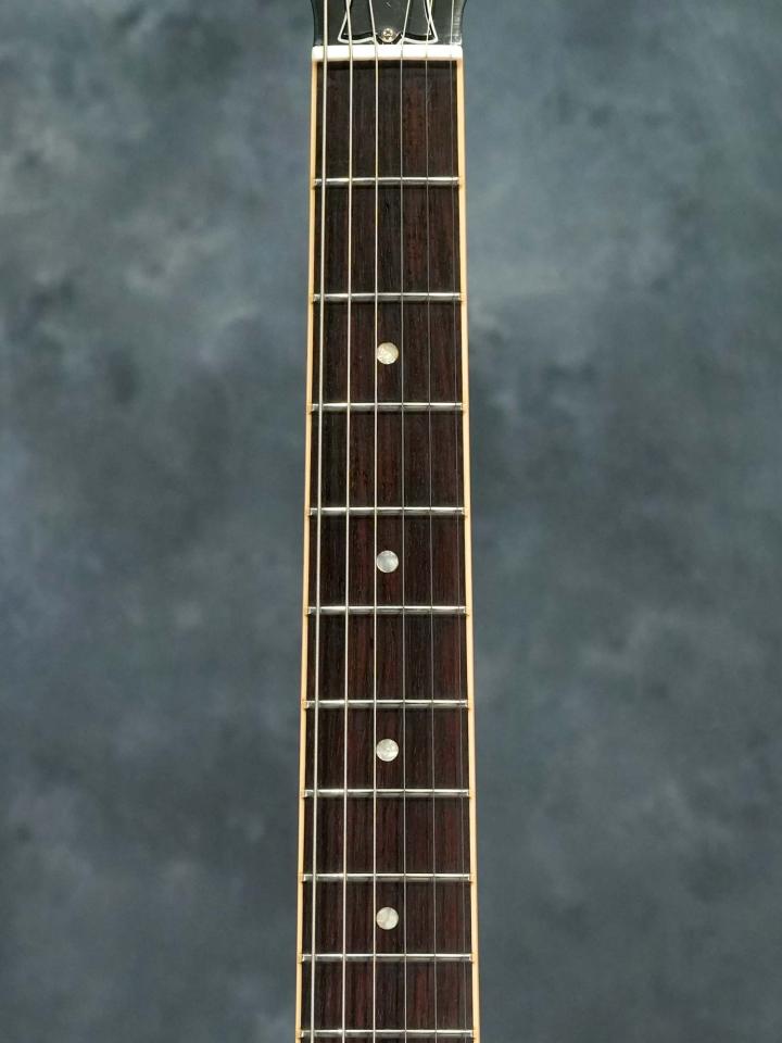 ネックはほぼストレートの丁度良い状態でトラスロッドの効きも良好、フレットは高音弦側のローポジションに減りがあるものの、極端な凹みや気になるようなビビり/音詰まりは無く、外観&演奏性共に年式を考えれば良いコンディションを保っています。