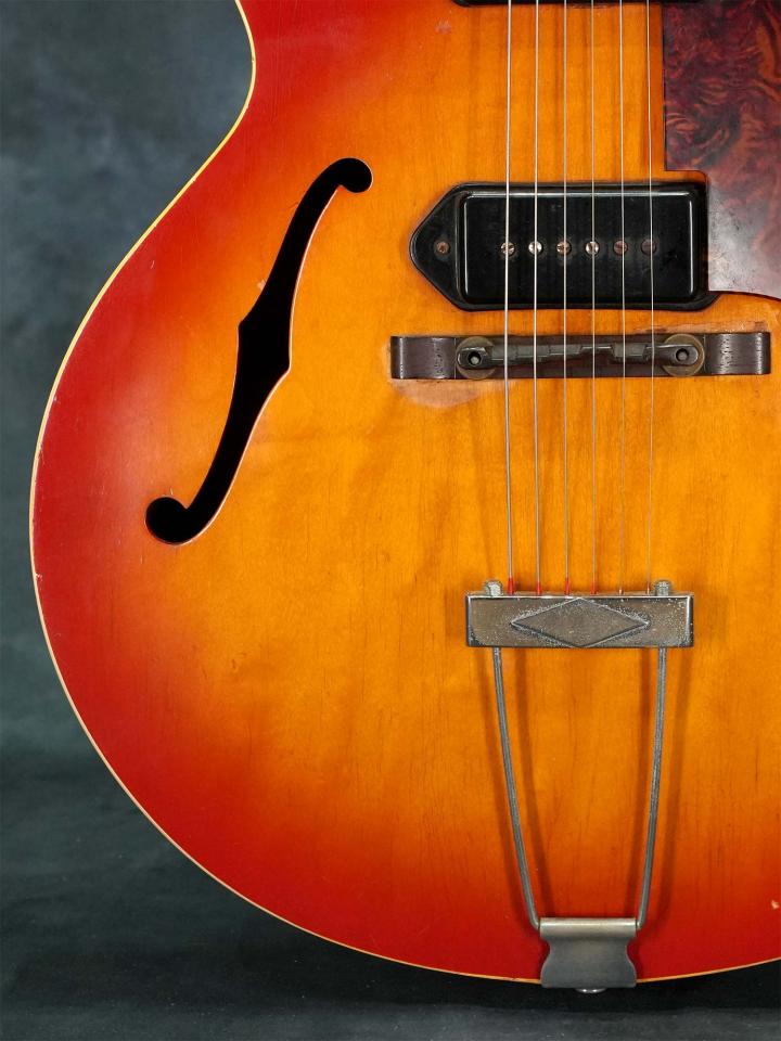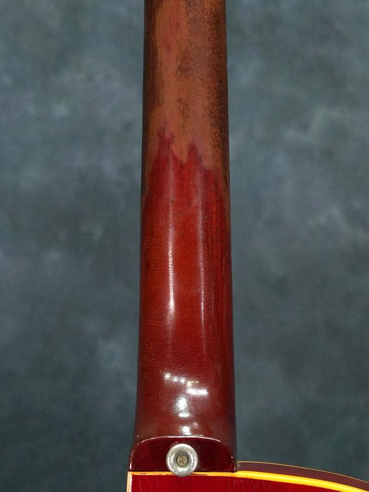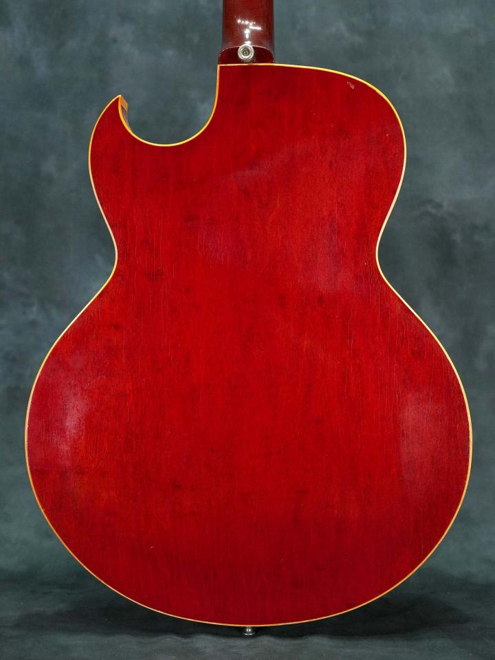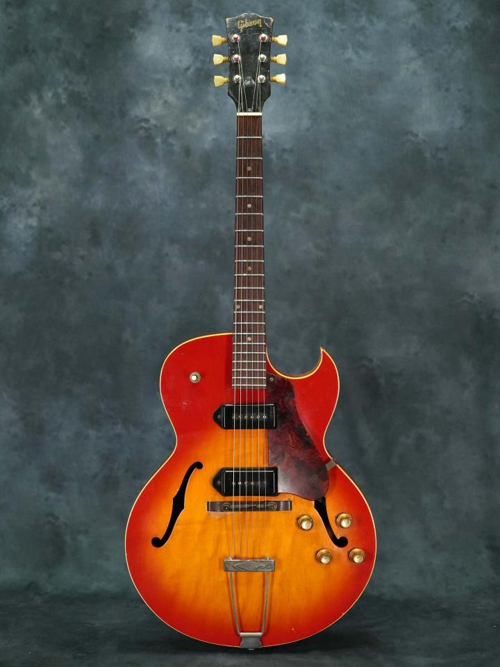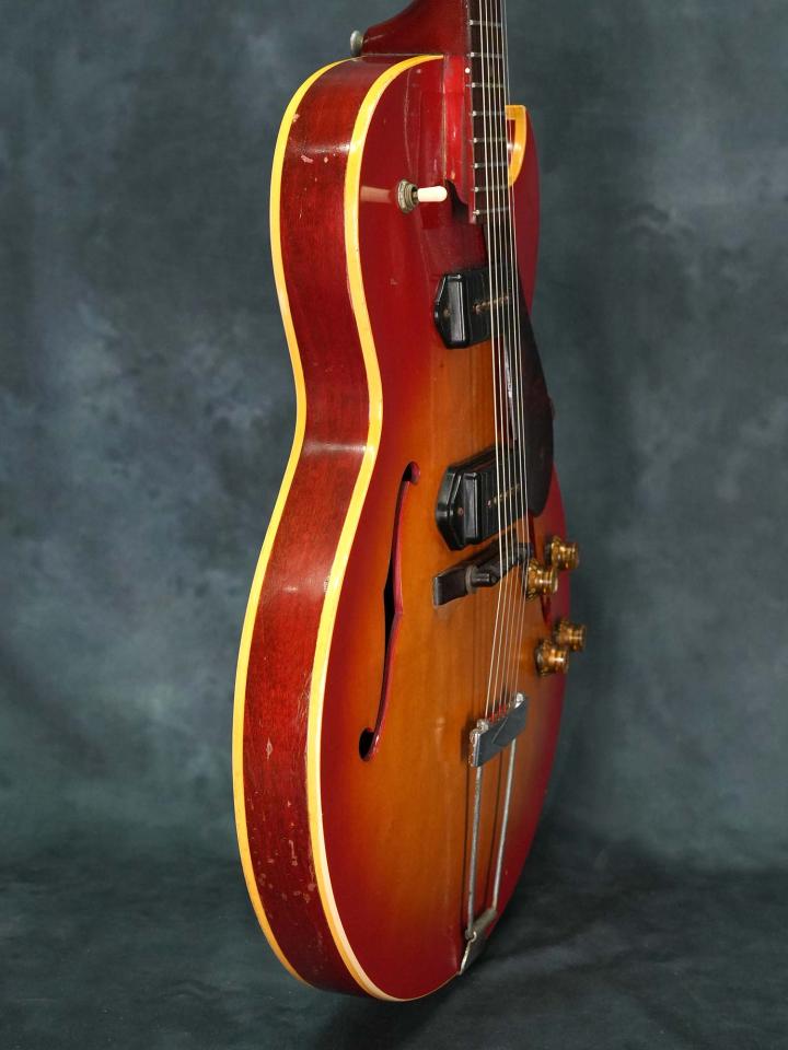 60年代ならではの鮮やかなチェリーサンバーストで、経年により全体にはびっしりウェザーチェックも入った貫禄のルックス、リフレットされている事で演奏性も良く、ジャズやブルースで活躍する枯れた音色が心地良いフルアコをお探しの方にオススメの一本です。