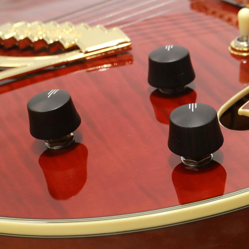 コントロールは2ヴォリューム、2トーン、3ウェイ・ピックアップ・セレクターのレイアウトで、各ピックアップのトーンはコイル・スプリットのプッシュ・プル・スイッチを兼ねており、トータルで8通りのコイルの組み合わせを備えています。