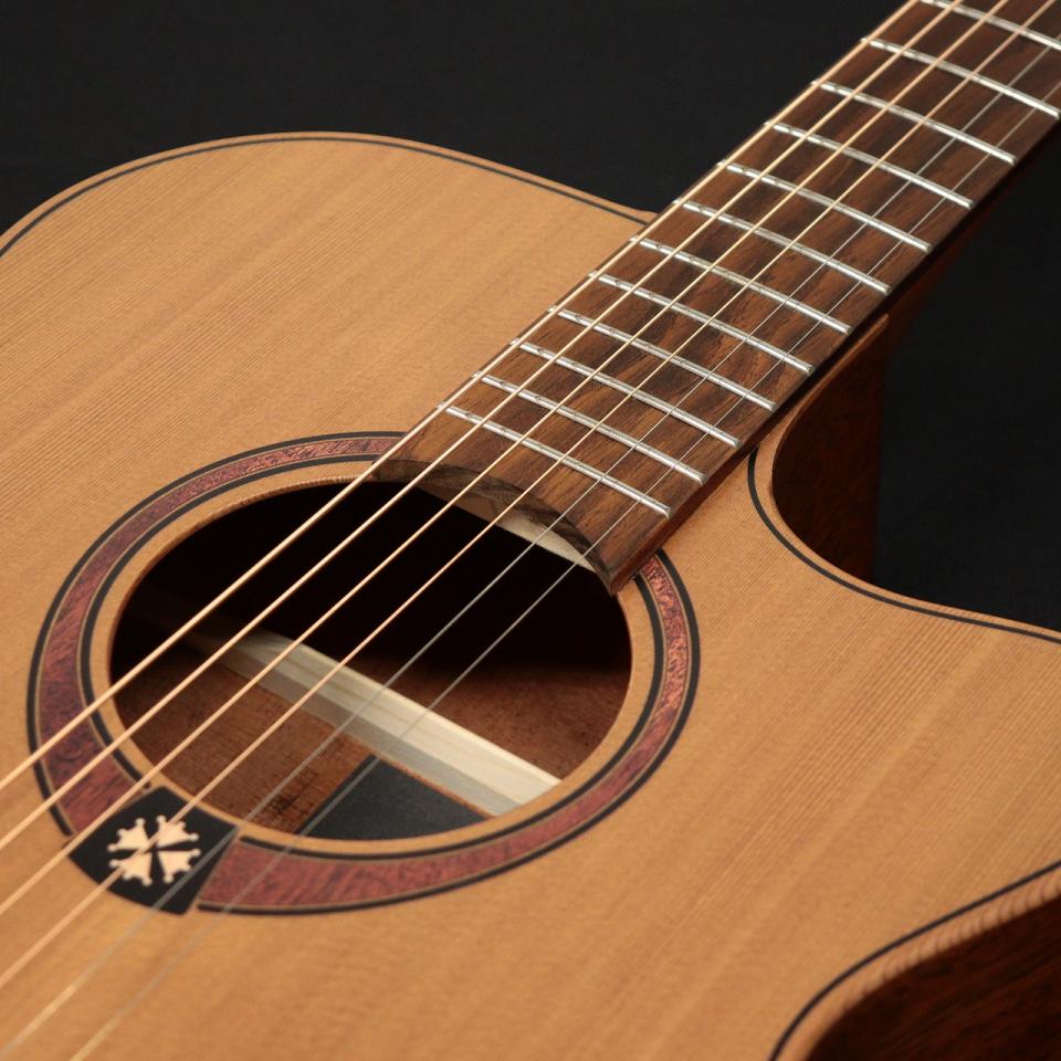 厳選された美しい木材に始まり、乾燥から組み立て・装飾に至るまでこだわりを持って作られたギター。
