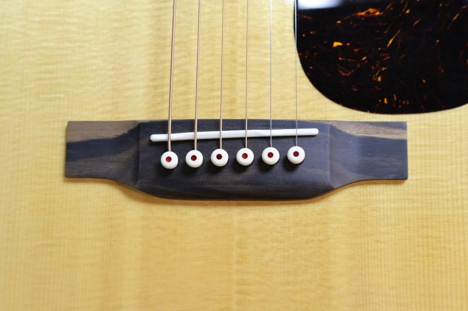 スキャロップドされたブレーシングによりD-28よりもトップの振動が大きく、音が前に広がってくれます。