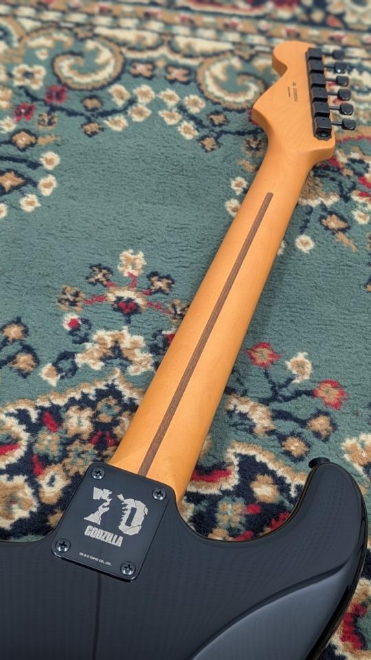 視覚的なインパクト: 指板の12フレット付近には、ゴジラのロゴが大胆にあしらわれ、視覚的に強いインパクトを与えます。