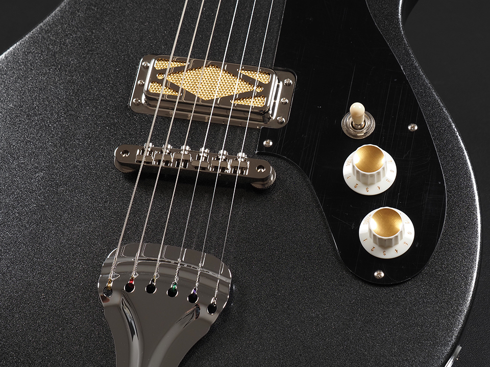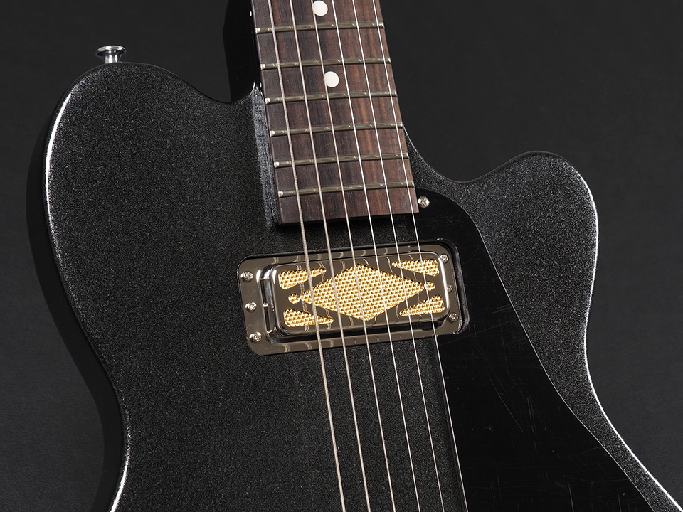 フェライトバー・マグネットをコイル側面に配置し、通常のシングルコイルより幅広い磁界を形成してハムバッカー的なアタックとエアー感を作り出しています。ニッケルメッキが施されたブラス製カバー、アルミニウム製ベースプレート、ゴールドフォイル・トッププレートはノイズシールド効果を発揮するだけではなく、トーンキャラクターを形成する上でも重要なファクターとなっています。
