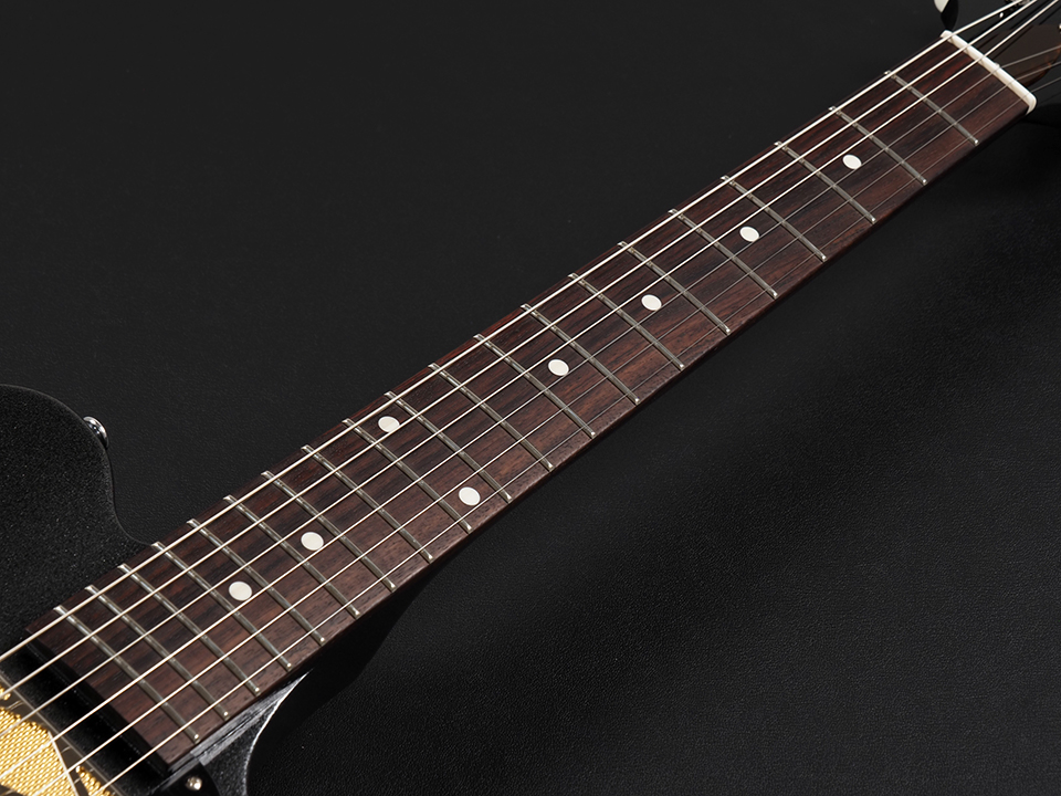 ソリッドボディ・モデルながらもボディ厚を37mmと薄くすることでアコースティカルなトーンの獲得と「超軽量」を実現。この軽量さが相応しい独自の「鳴り」を実現し、プレイに於いてのストレスフルさは大きな魅力です。