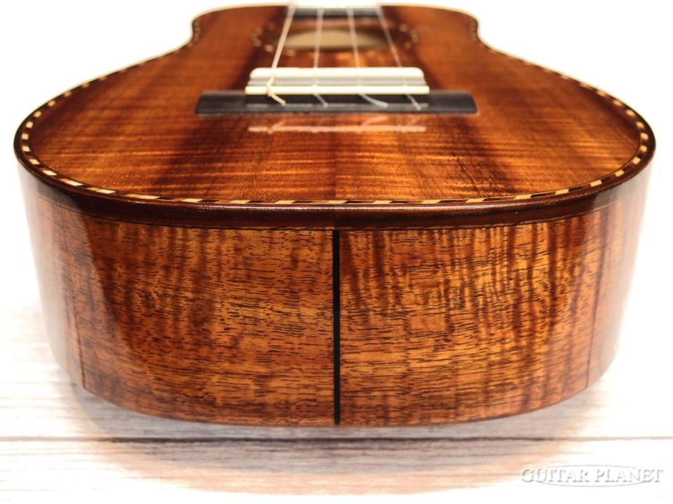 美しい杢目のハワイアンコア、ロープバインディング装飾がハイグレードモデルである象徴になっており、スタンダードモデルと異なる特徴は、Low-Gチューニングの際のバランスを考慮した設計にあります。