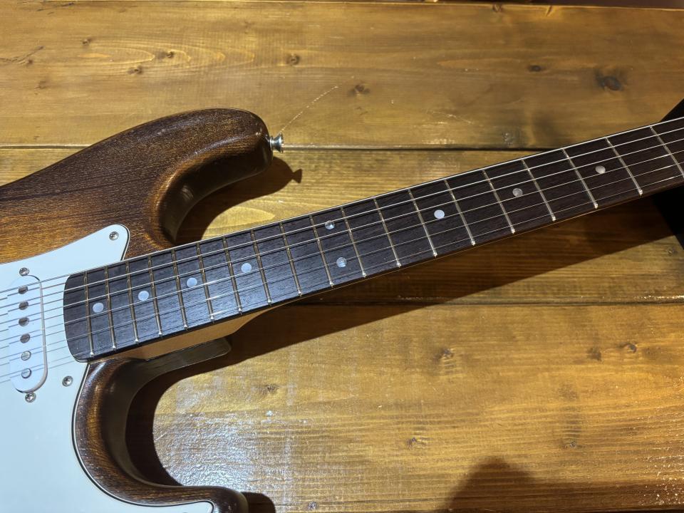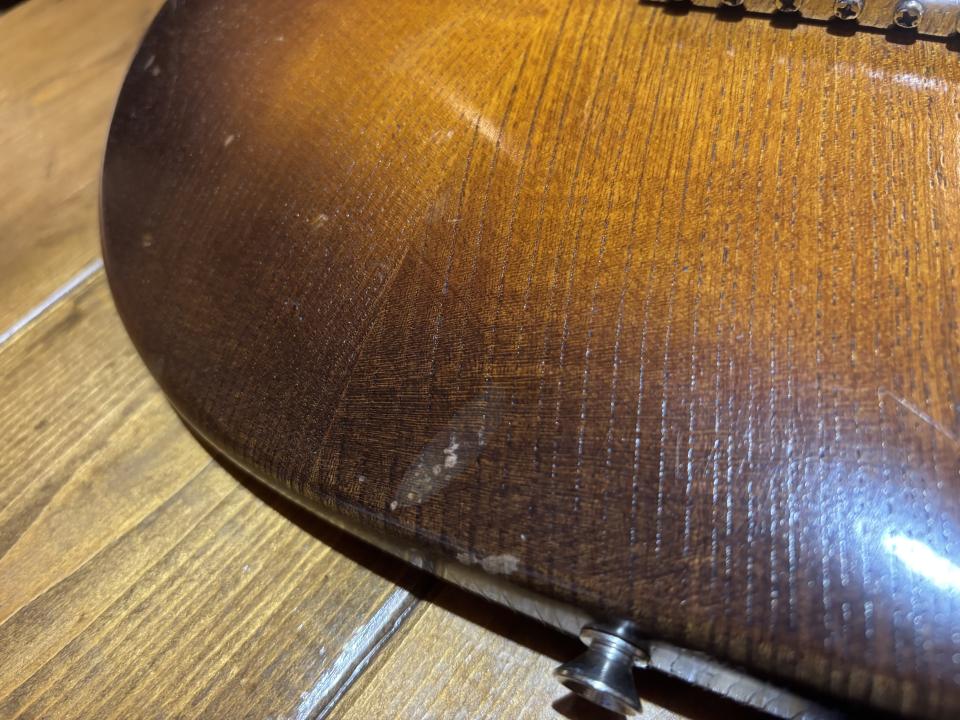 ボディ&ネックの塗膜が薄い分、画像の通りキズはそれなりにありますが、生鳴りは心地良く響きます。