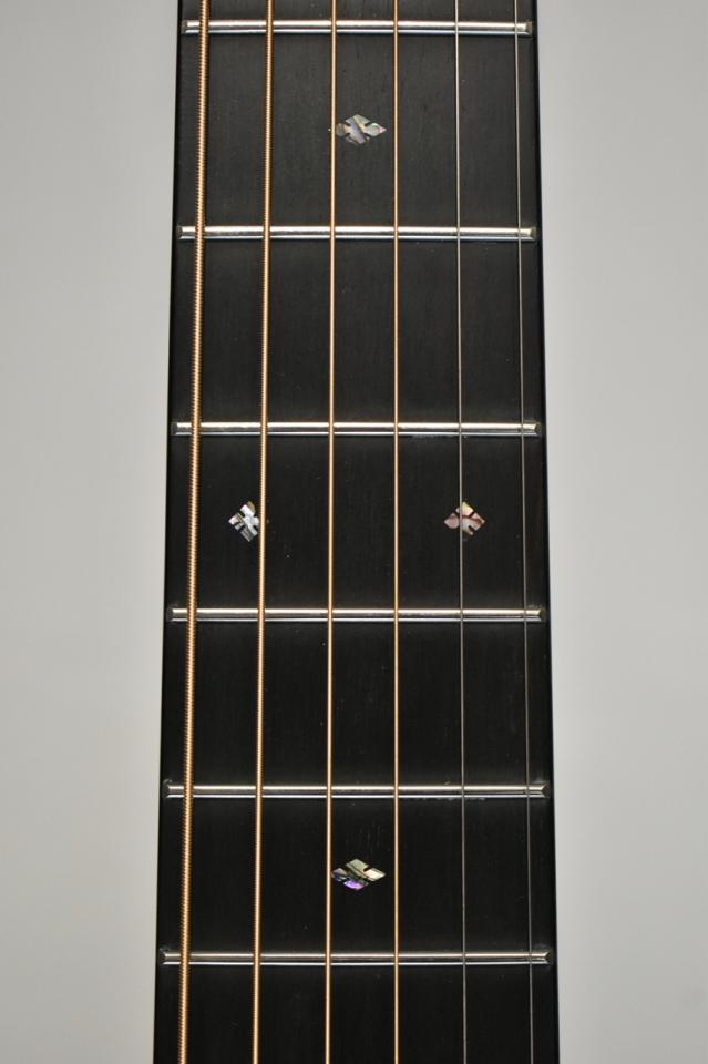 フレット残量は9割、弦高は6弦側約3.0mm、1弦側約2.0mm、と標準的なセッティング、サドル高さは6弦側約3.7mm、1弦側約2.7mmと余裕がございます。