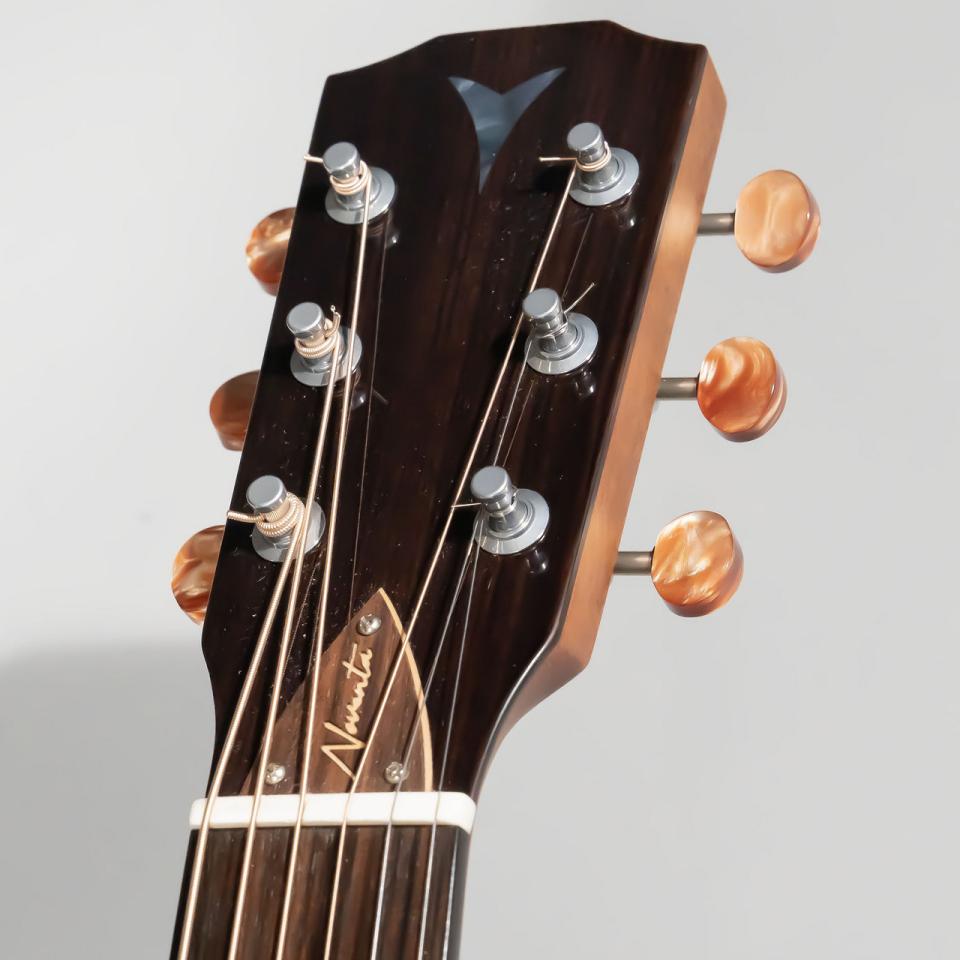 90周年を記念して製作された「NOVENTA」最大の特徴は、先代矢入一男の「シンプル・イズ・ベスト」の設計思想。特別な装飾を排し、実用本位でまとめられている。ヤイリギターの若手職人による現代的なアレンジも加わり、ボディ形状は手に持った際のフィット感と演奏性を追求。軽量で取り回しやすく、演奏姿勢を選ばないため、長時間のプレイも快適です。