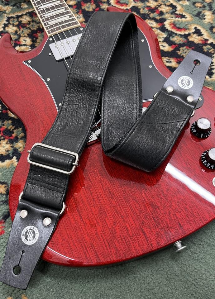 また、定番カラーのブラックですので様々なギターにピッタリなストラップです。