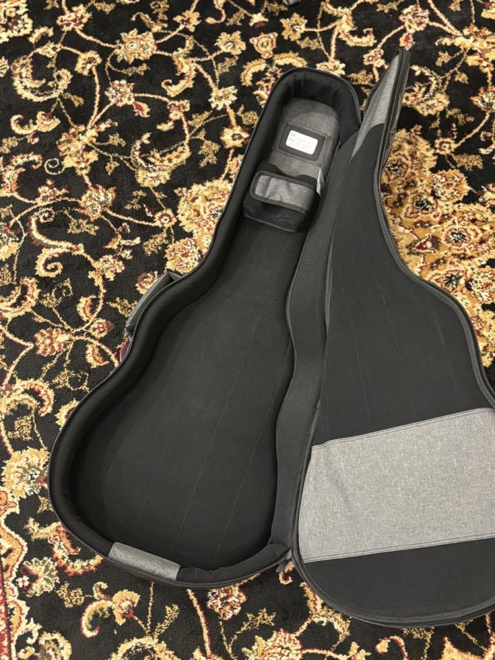内側のネックピローがギターを保護するのはもちろん、肩ひもにもマッシュ素材のクッション感があって体に負担が少ないです。