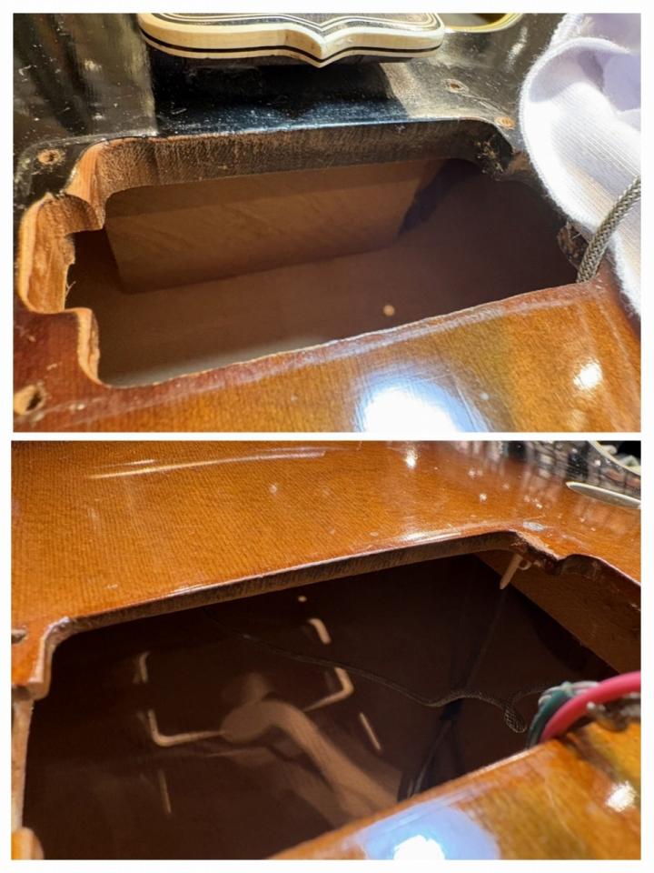 デメリット: 強いチョーキングを多用するスタイルの方には、現状では音詰まりが発生する可能性があるため、その点を予めご了承ください。このままローフレットの弾き心地を楽しむか、将来的にリフレットを行うか、オーナー様のご判断に委ねられます。