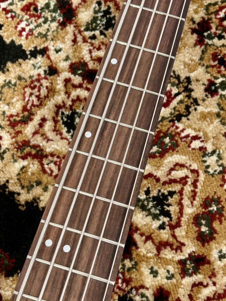 ジャズベース譲りのスリムなナット幅を用いた24フレット仕様のネックと、立体的なカットの施されたコンパクトなボディデザインが特徴のモデルになります。