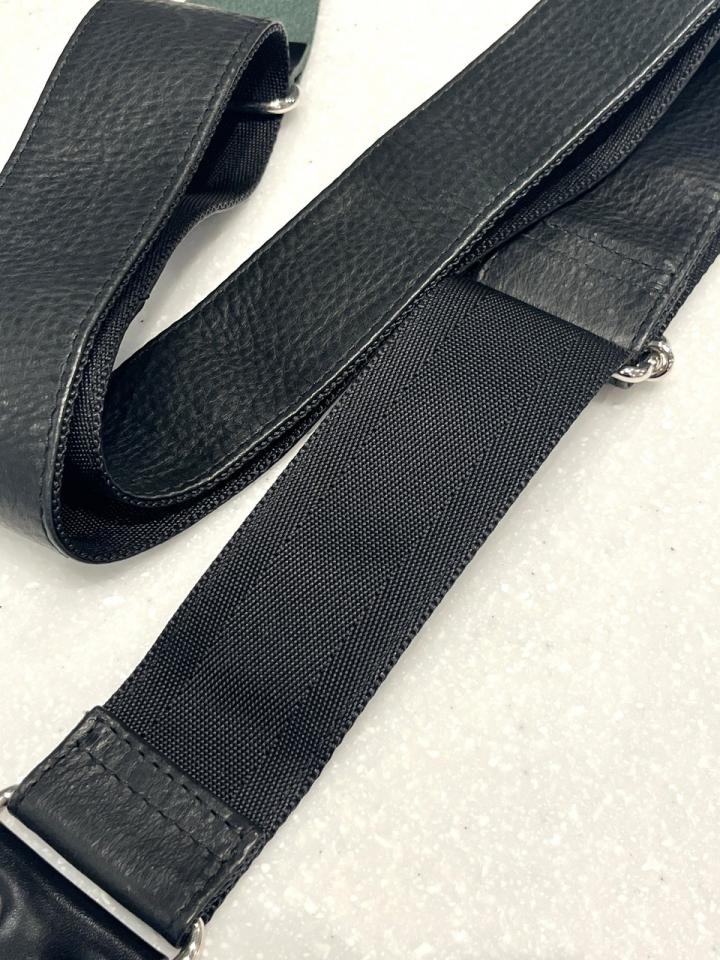 表面はレザー、裏面はシートベルトのようなツルツルとした質感の生地のストラップです。