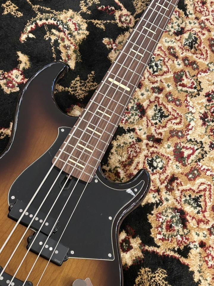 ネックにはメイプルとマホガニーの5ピースネック、ローズウッド指板を採用することで、ネックの強度を高めています。