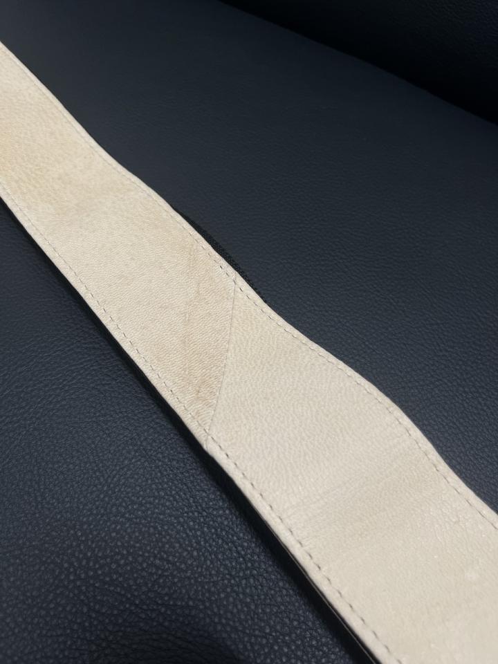 また、カラーが落ち着いた白色ですので馴染みがよく、革の表情がよくわかるストラップになっています。