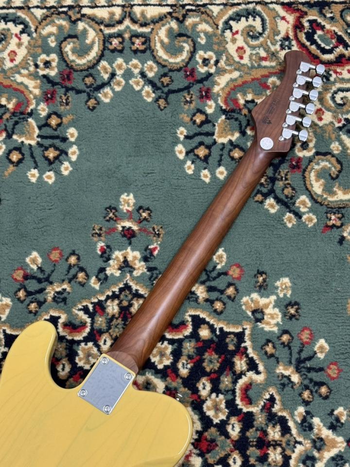ギターを構えた際に体に当たる、エルボー部分とバック部分にコンター加工を施しております。それにより構えた際に、体へのフィット感が良くストレス無く演奏することが可能です。アッシュ材をボディに使用することで、ローステッドメイプルネックと合わさり、アタック感とキレの良いサウンドを生み出しております。