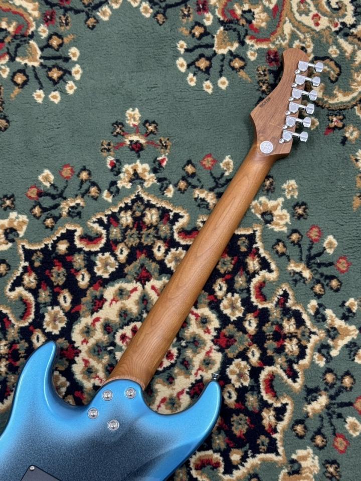 ローステッドメイプルとはメイプルを高温で加熱処理して材の中の水分や油分を揮発させることにより木材を経年変化した状態に人工的に近づけた材のことです。経年変化が進んだ材は歪みやねじれが生じにくくなります。ネックに使用されるとその効果は安定性だけでなくサウンドにも及び、豊かな生鳴りと経年変化したビンテージのようなこなれたトーンを生み出します。一般的に高級機種などで用いられる材ですが、手に取りやすい価格帯に落とし込むことに成功しました。