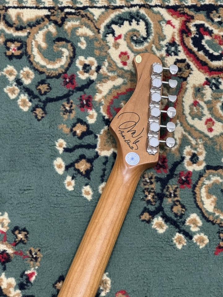 同シリーズの”TAC24″モデルをベースに、アンドレがかねてから愛用してきた「T-STANDARD A.D. CUSTOM」と同じS-S-Hピックアップ配列を採用。ボリュームとトーンノブの間に搭載されたミニスイッチにより、リアポジションのハムバッカーではコイルタップを行うことが可能です。