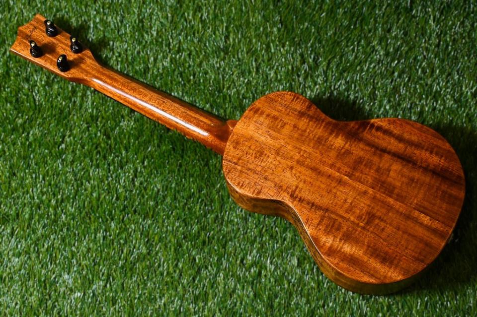 ボディ・ヘッド突板には杢目の良いハワイアンコアを使用。