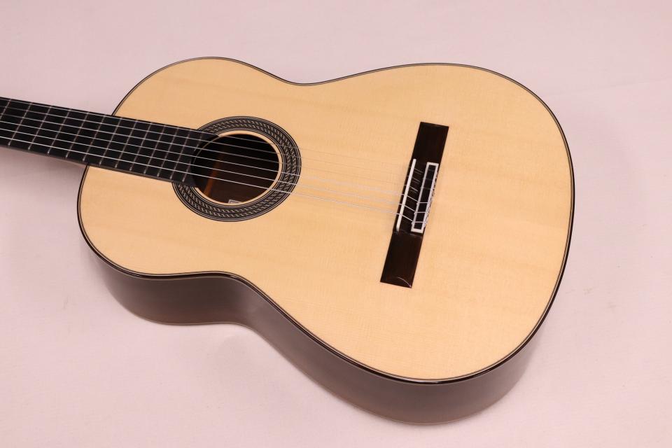 まだ製作されて間もない楽器ですので演奏性の問題は無く全体的にとても綺麗な状態です。ネックはストレート、弦高は12F上6弦側約4.0mm、1弦側約3.0mmと標準的な状態です。表板は演奏時や弦の交換時に入ったと思われるセラック塗装への浅い傷が散見しますが目立つような状態ではございません。気になる方は店頭で直接ご確認ください。