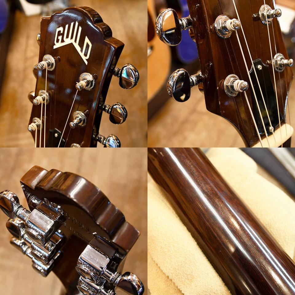Guild(ギルド):「マーチンでもギブソンでもない第3のギター」として知られる1952年創業の米国のギターメーカー。重厚感がありボリュームのあるボディや目を引くヘッド・デザインが特徴。主なタイプはドレッドノート(D-25,D-35,D-40,D-50,D-55)、コンサート(M-20,M-40)、ジャンボ(F-20,F-25,F-30,F-40,F-55)、オーケストラ(OM)など。特にギルドの12弦ギターは有名。(Guild/ギルドのキーワード検索結果はこちら)