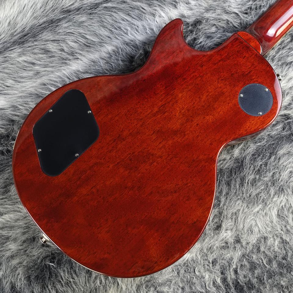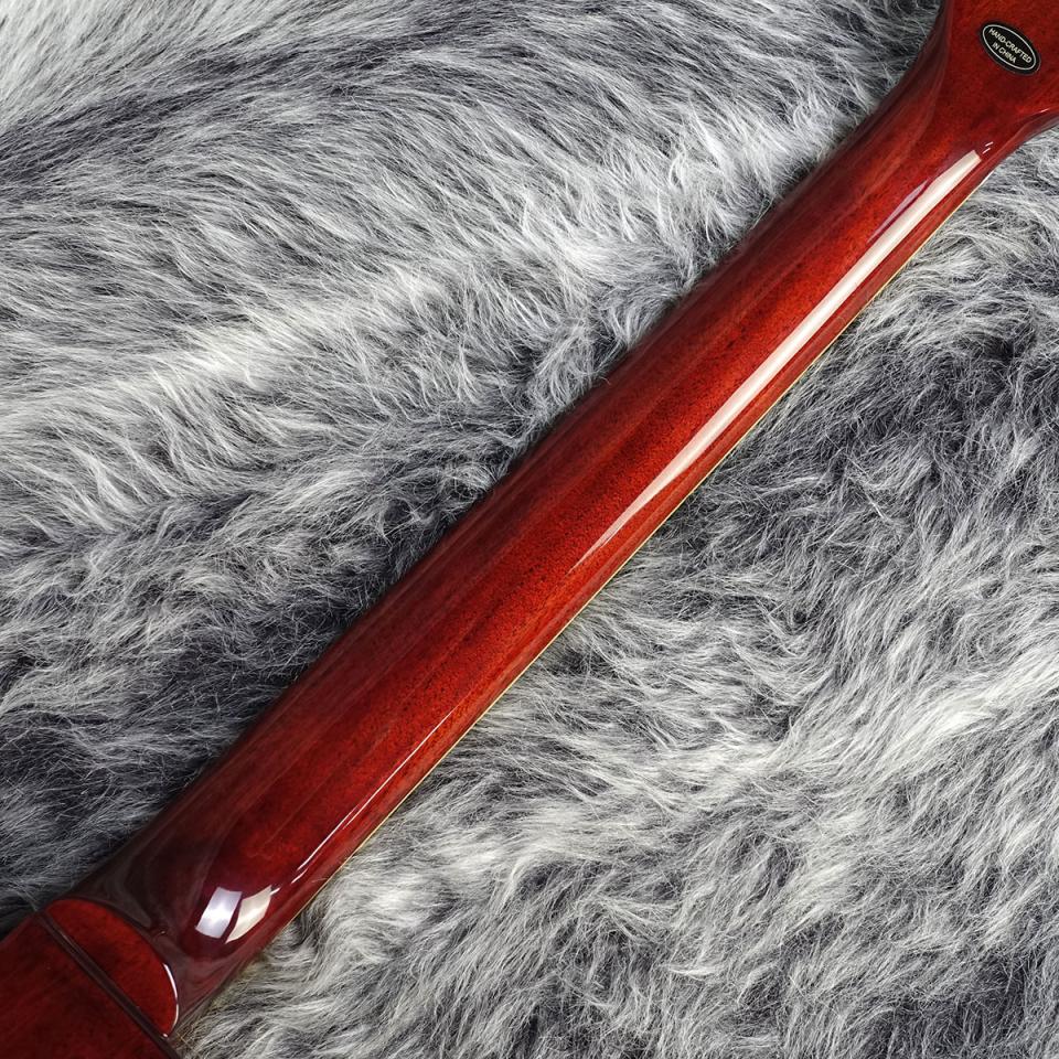 ボディトップにはメイプルが貼られ、杢目を際立たせるトランスルーセント系カラーにはAAA グレードのフレイムメイプル化粧板がトップにあしらわれ、往年の”フレイムメイプルトップ”の外観を醸し出しています。