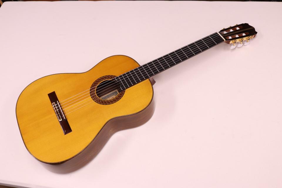 備考:日本を代表する製作家の一人、今井勇一氏の作品です。今回入荷したのは滅多に出回る事の無い1980年代の作品です。ネックはストレート、弦高は12F上6弦側約3.9mm、1弦側約2.8mmと標準的なコンディション。年相応の小傷やウェザーチェックのような薄いニス割れは全体的に多数ございますが、割れのような大きなダメージは見受けらません。