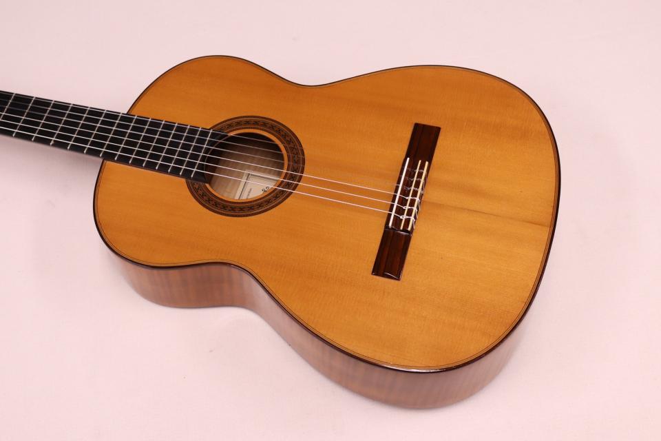 備考:東ドイツ・フランク・ペーター・ディートリッヒ作のギターです。表板には上質な松材を、横裏板には見入ってしまうほど美しいメイプル材が使用されています。オール単板かと思われますが、メイプルは木目の判断が難しいためスペック欄は未記載としてあります。