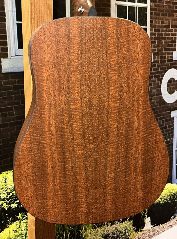ボディトップにはスプルース単板材を使用し、サイドとバックにはマホガニー柄のハイプレッシャー・ラミネイト材を用いたドレッドノートサイズのモデル。