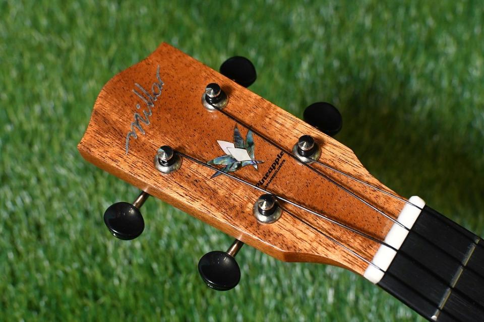 ヘッドインレイには、ウクレレの成長、プレイヤーの成長を願い、パイナップルのつぼみが描かれています。