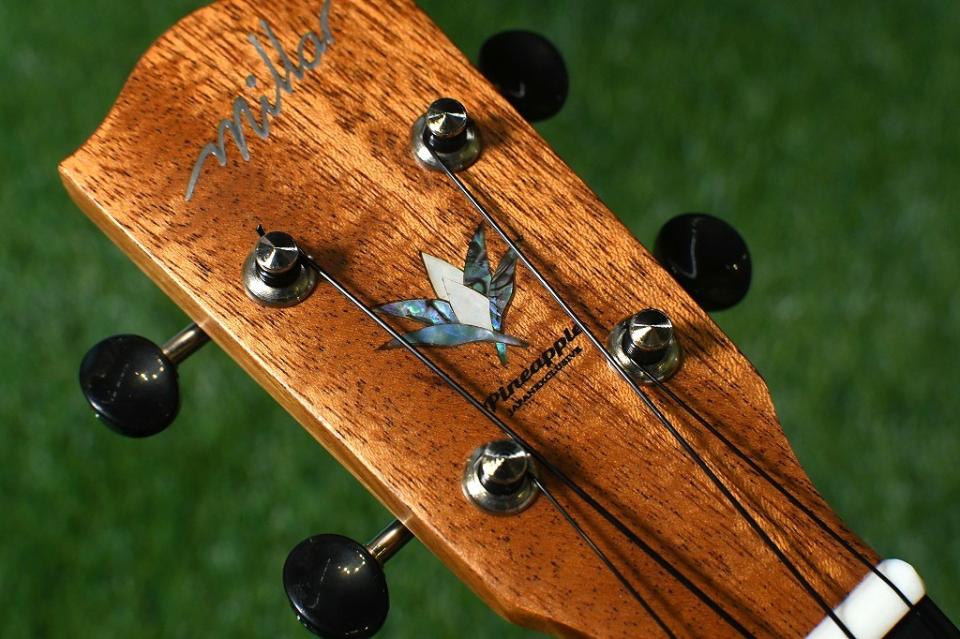 ヘッドインレイには、ウクレレの成長、プレイヤーの成長を願い、パイナップルのつぼみが描かれています。