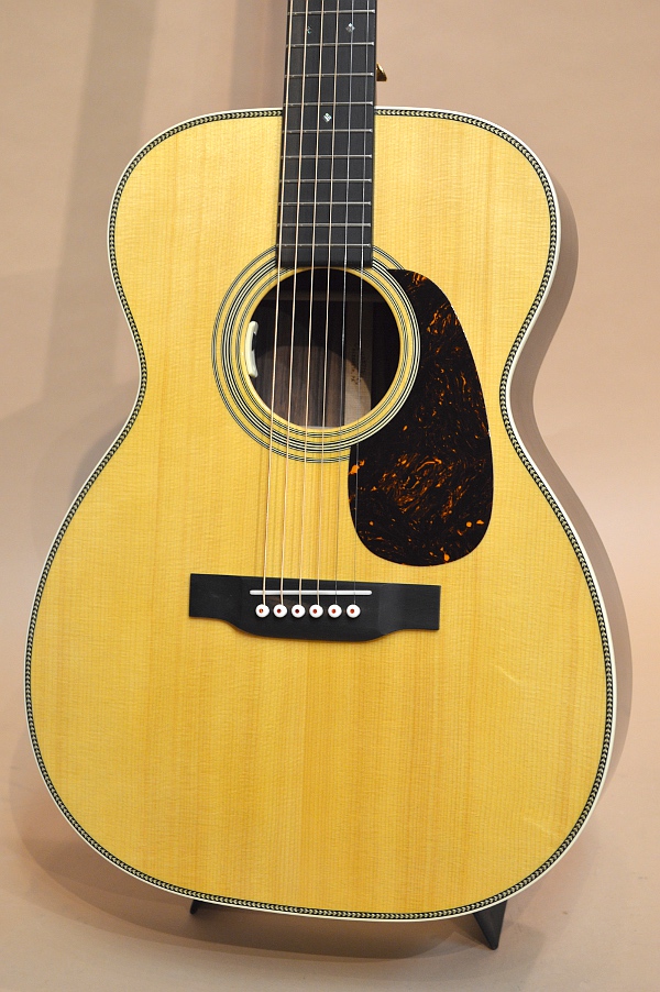 少し小ぶりなボディーと反応の良いサウンドで人気の高い00サイズ。マーチンの00サイズは、Dサイズより遥か昔、1800年代から生産が続けられて来たマーチン伝統のボディー・スタイルです!00-28は1873年から生産が開始された、最古参の伝統的なモデルでしたが、1931年以降はほとんど生産がされていませんでした。1990年代にはビンテージ・シリーズで復活を遂げますが、オリジナルの00-28のほとんどが12フレット・ジョイントだった為、リイシューされたモデルも12フレット・ジョイントの00-28VSでした。そんな00-28が遂に2017年に14フレット・ジョイントで復活を遂げます!翌年のマーチン社の各モデルの大幅リニューアルを機に他モデル同様、基本ビンテージ・スペックを踏襲したモデルへと生まれ変わりました!