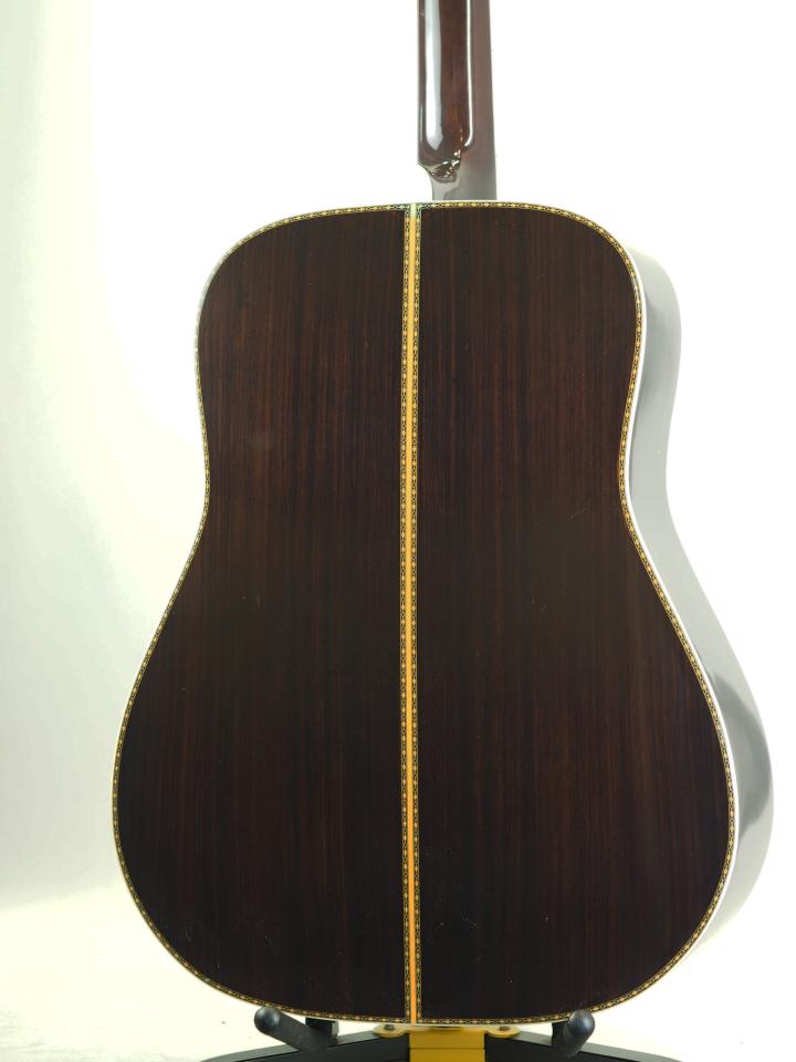 このL-10は後期型の仕様を持ち、上質なえぞ松とパリサンドルを総単板で使用するなど、トップモデルとしてクオリティに妥協はありません。艶やかさと清涼感が感じられる高音域と、太さがありながらも適度にタイトにコントロールされた低音域。それらがバランスを保ち心地よいコードの響きが得られます。時代背景から考えても歌伴奏に最適なフォークギターらしさを持っています。