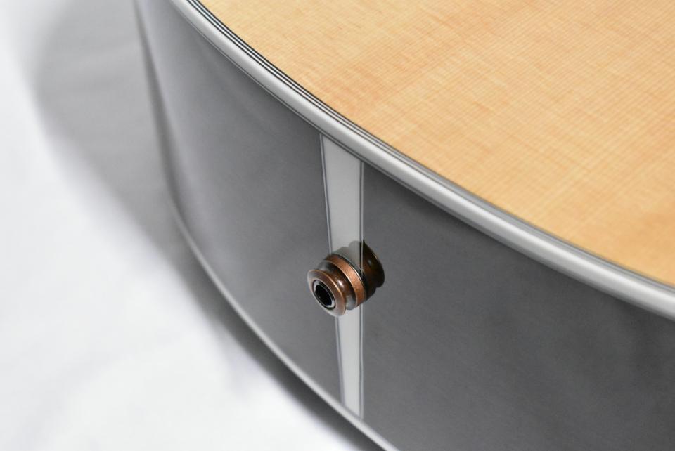 ボリュームのみのシンプルなコントロール、アンダーサドルピエゾでハウリングに強く、扱いやすいピックアップです。