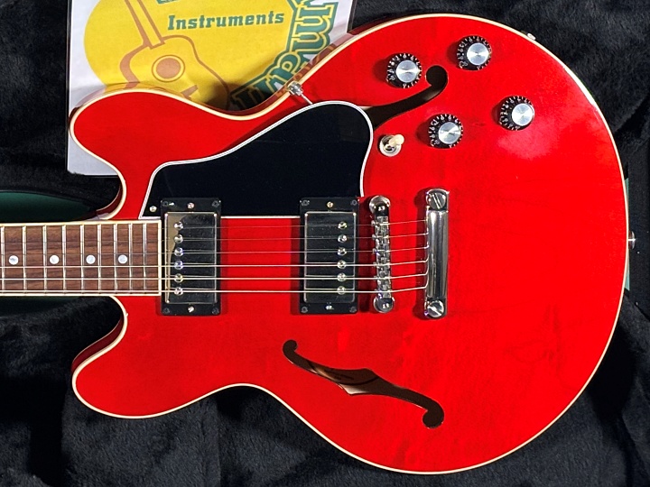 ES-335よりもソリッド感が強めながらも程良いエアー感があり、リアでは程良く輪郭のあるカリっとした歯切の良いサウンドで、フロントでは甘く艶やかなサウンドで鳴ってくれます。また軽く歪ませてのドライブサウンドも心地良く、幅広いジャンルで使える楽器です。