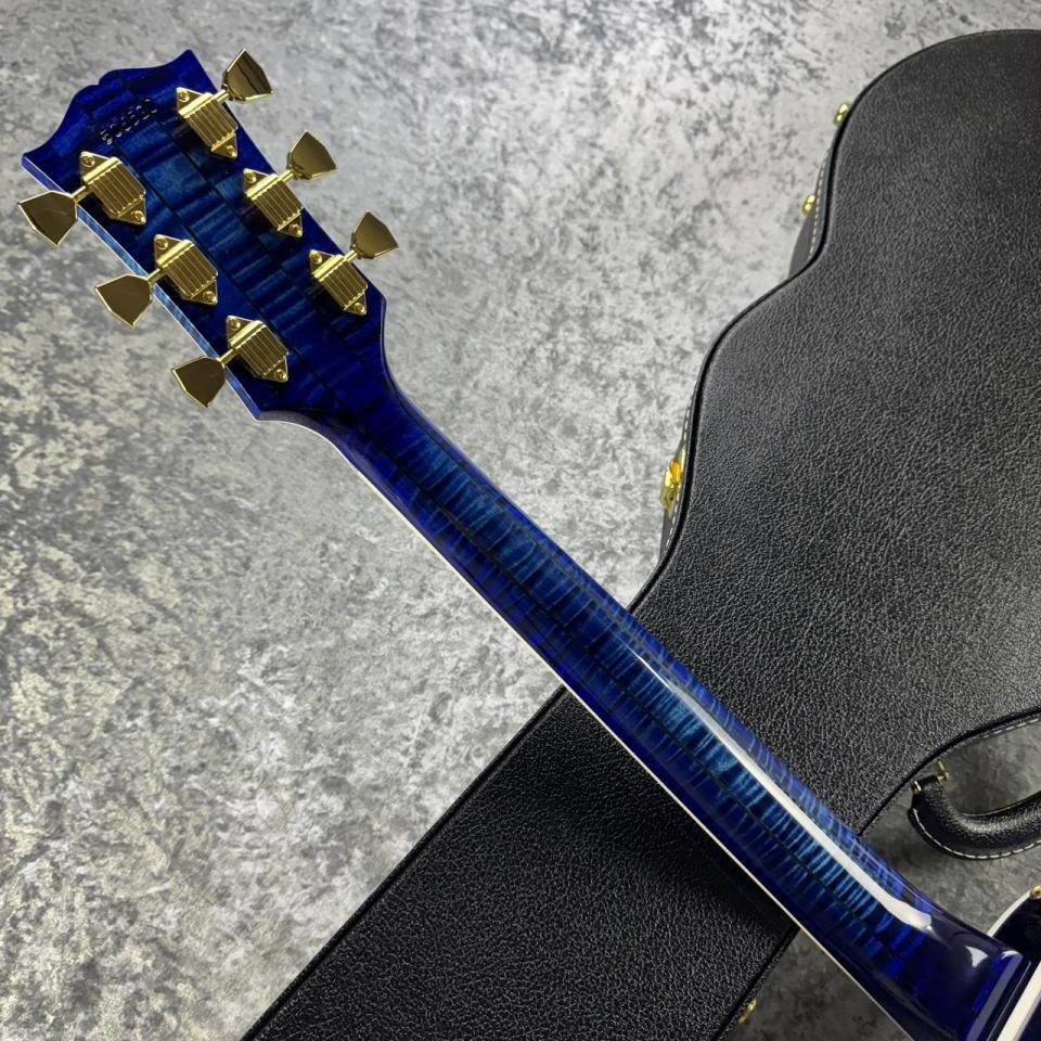 ボディートップカラーに合わせ、ネックとヘッドをTrans Blue Burst、ボディーバックをDark Blueで仕上げており、美しいコントラストが印象的です。全てを最高峰で仕上げた至高の逸品。