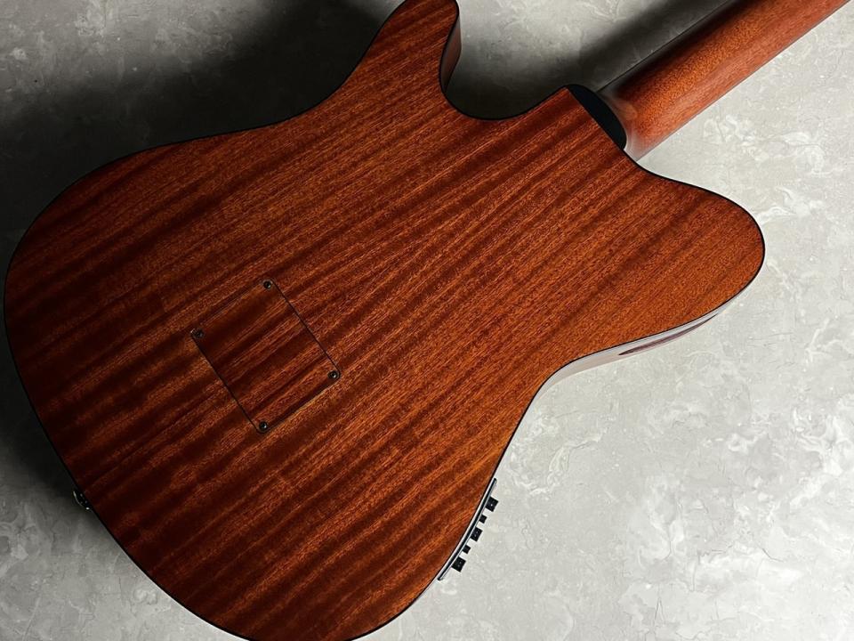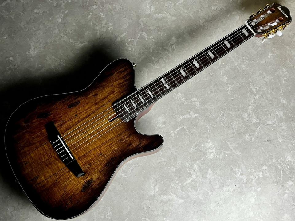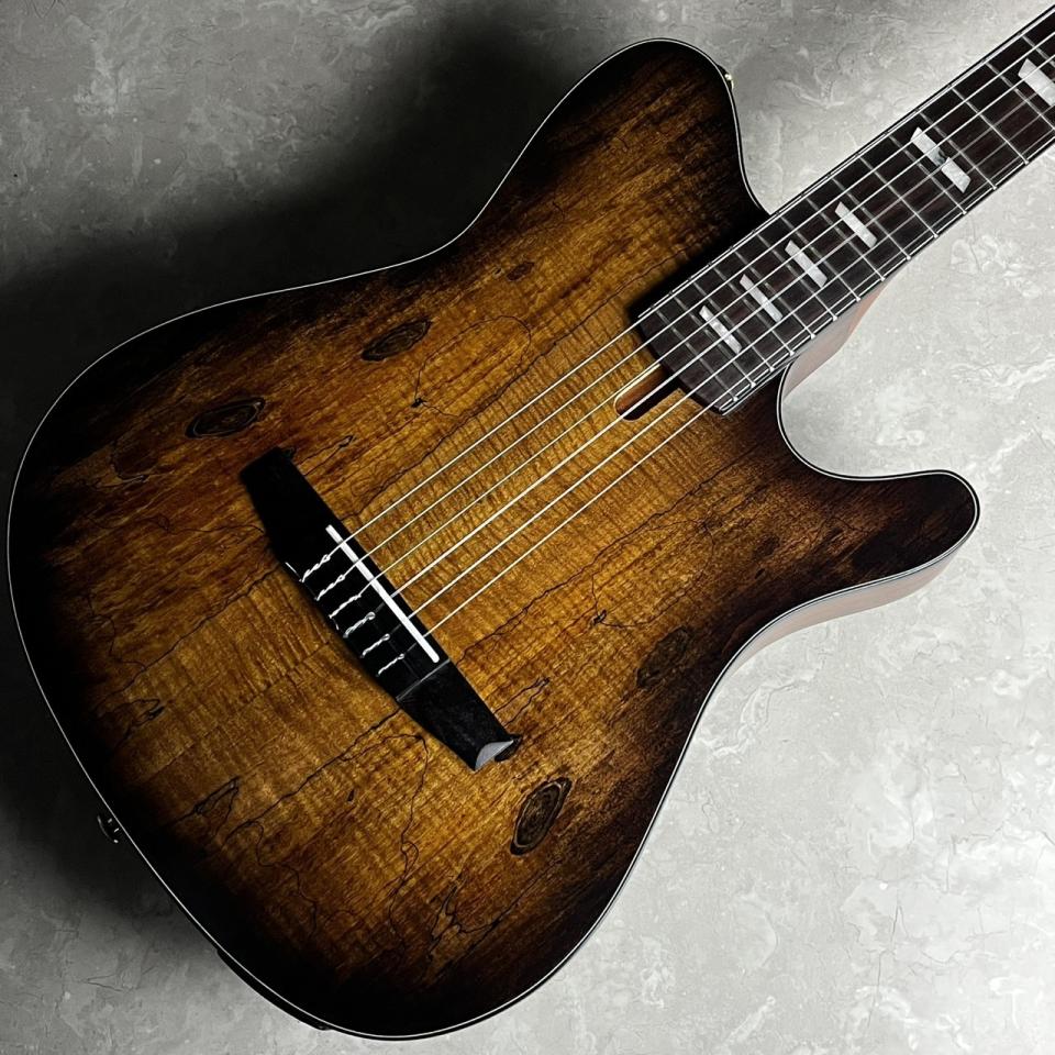 シングルカットのIbanezオリジナル“FR”シェイプをベースに、クラシックギターの伝統技法であるファン・ブレーシングを採用。