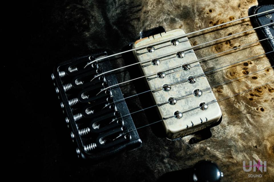 なんとピックアップはBare Knuckle製「Aftermath Tyger」を搭載、ブリッジはHIPSHOT製のハードテイルタイプです。