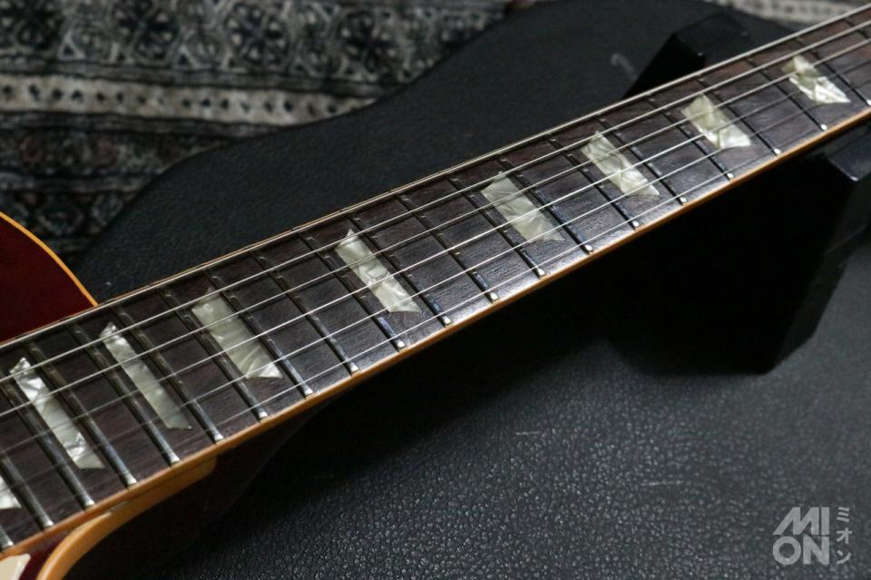 この時代ならではのパンケーキ構造、メイプルトップ&マホガニーボディ。ネックはマホガニーとメイプルがどちらも存在する時期となり、こちらはマホガニーと思われますが、外観のみでの判断となります。オリジナルのギブソンのミニハムバッカー2基をマウント。ポットは製造年から3年後の1978年製のものを搭載しており、こちらもオリジナルかどうかは不明となります。配線系統などの外観から全てオリジナルの可能性が高いでしょう。