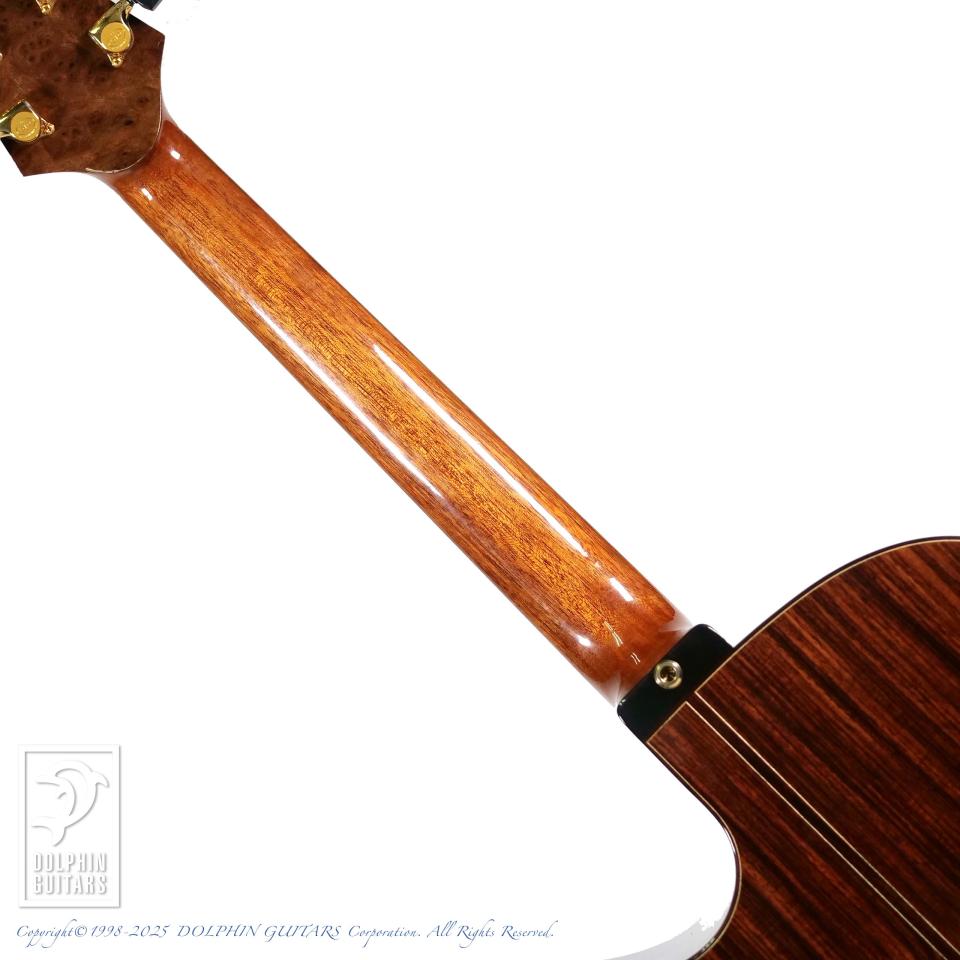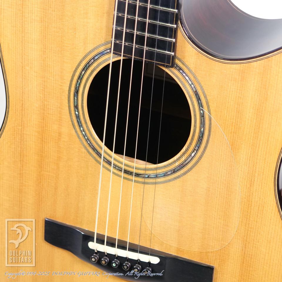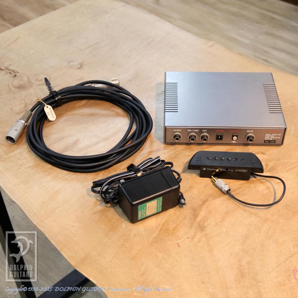 トップは弾き込まれた様子があり、極薄塗装ゆえに全体に演奏キズが多くございます。トップ以外の塗装は入荷時に亀岡氏によってリフィニッシュされており、美しい外観です。その他演奏面のコンディションは良好で、ピックアップには押尾コータロー氏の数々の名演を支えてきたM-Factoryを搭載しております。サンライズS-2、プリアンプ、ケーブルもフルセットで揃っており、即ライブ使用が可能です。