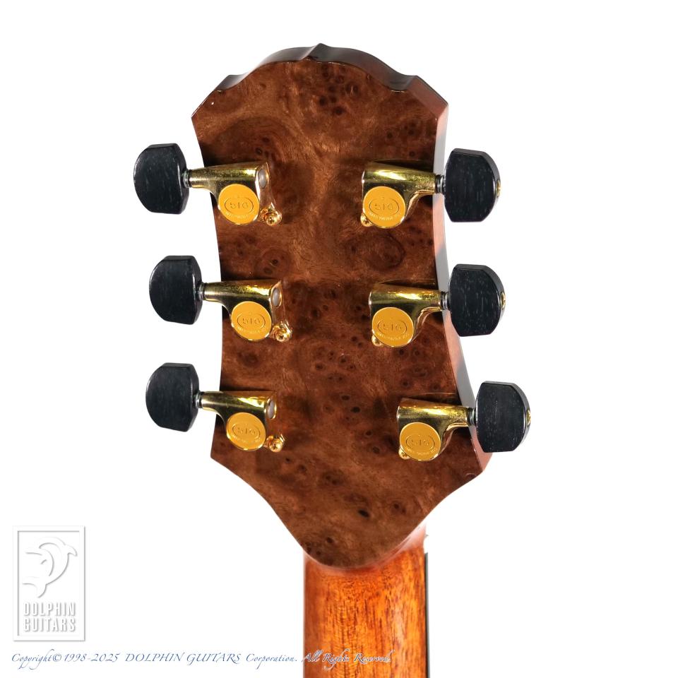 近年でもあまり見ることのないエルボーコンター仕様に加え、ヘッドにはあの世界的インレイ職人、Larry Robinson(ラリー・ロビンソン)氏による作品が彩られております。