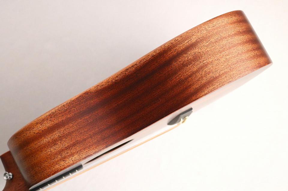 ボディ材はスプルーストップとサペリ材による組み合わせ。サペリ材による明るく温かいサウンドは一度聴くと心地よい気分にさせてくれます!