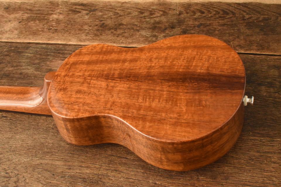 人気のKIWAYA・ハワイアンコア単板ボディのソプラノサイズ・ハイグレード材を使用した希少な一本・サウンド&操作性抜群