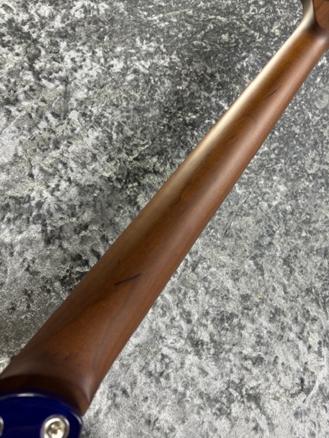 ネックとボディの接合部(ヒール)を削り込むヒールカット加工を施しました。ジョイントプレートを廃し、ハイフレットを演奏する際に手にフィットし、違和感を感じさせない自然な形状となっています。