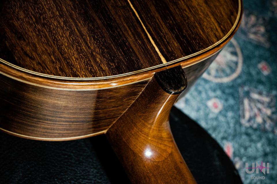 野辺邦治氏に師事したのち、オックスフォードのデビッド・ルビオの工房でギター製作に携わり、70年代中頃に独立した、ドイツでギタールシアーとして活躍するKazuo Sato (カズオ・サトウ)ブランドのモデル。
