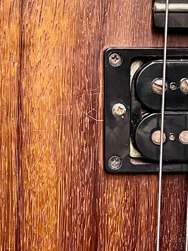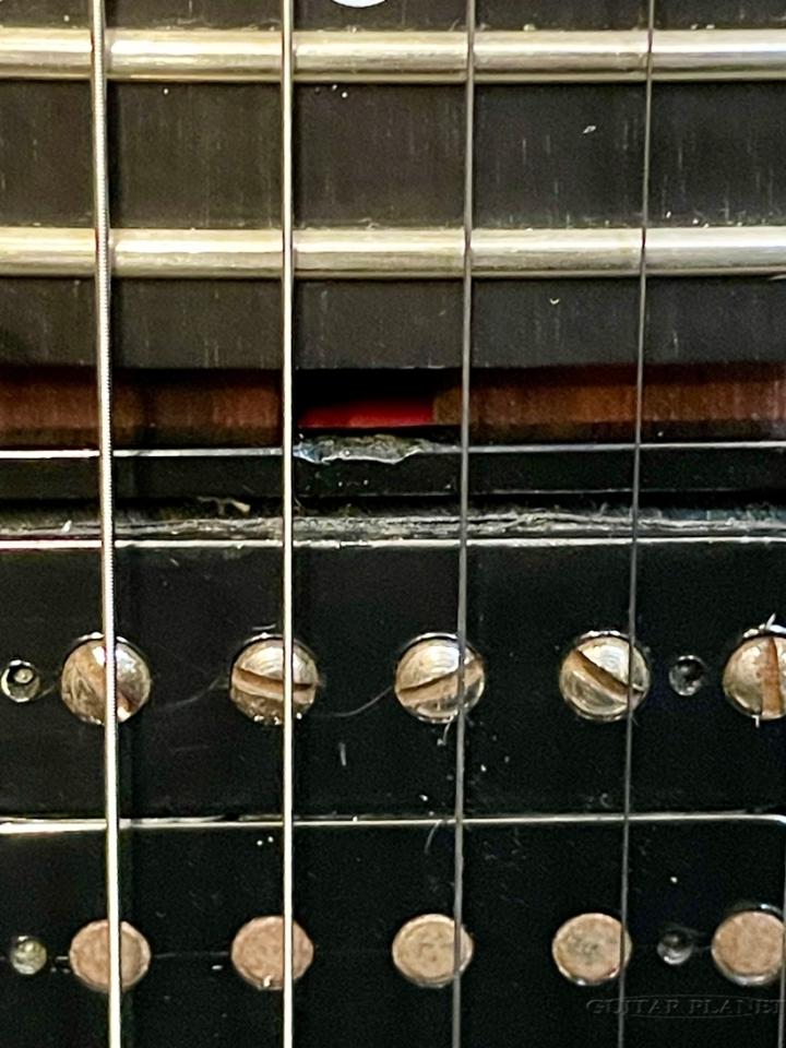 コンディションは経年や使用に伴うスリキズや打痕、パーツ類のくすみやサビ、一部塗装に艶、フロントエスカッションのトラスロッド穴付近に削れが見受けられますがフレットはリフレットが施されており減りも少なく、トラスロッドの効きも良好なコンディション。