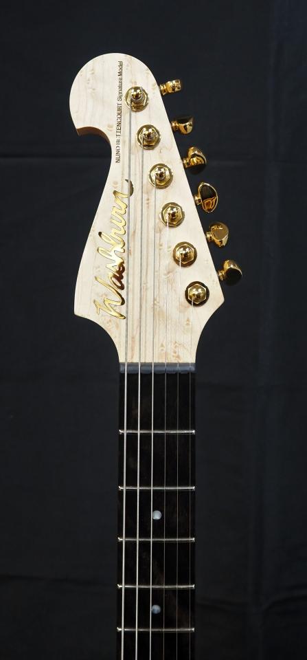 Washburn USA Custom Shopで製作された逸品。ヌーノ・ベッテンコートの愛機 "N4"と並び愛用されている "NELE DELUXE" 。高級感溢れるフィギュアドメイプルのトップにスワンプアッシュのバック。ネックは美しいバーズアイメイプルを採用。代名詞と言えるステファンズ・エクステンデッドカッタウェイにバジーフェイトン・チューニングシステムも採用。ハイフレットまでストレスの無い圧巻のプレイアビリティ、整然としたトーンバランスはさすがです。リアP.UにはBill Lawrence L-250を、フロントP.UにはSeymour Duncan Vintage Stackを搭載。セレクターにはあらゆるサウンドメイクを可能にする" 6way Freeway Ultra "を採用。ヴィンテージとモダンを両立する圧巻の完成度。小振りなボディサイズで操作性も抜群。弾き易さと高音質を高次元で両立したNUNO最高峰の1本です。