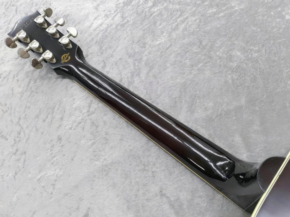 VOS仕上げのため枯れた雰囲気のルックスですが、塗装剝げなど大きく目立つようなダメージはありません。全体的に細かな擦り傷や打痕、ピックガードに弾き傷、ペグにくすみがあります。ネック状態良好でトラスロッドの可動も問題なく、現状にて弦高は12フレット6弦で約2.4mm、1弦で約1.8mm。ブリッジサドルの高さは適正な余裕が有ります。フレットはローポジションのプレーン弦で若干の減りが見られ8~9割残。ピックアップは若干の低音ノイズが入りますが、そこまで気になるレベルではありません。適度な暴れ感のある力強い響きが魅力の一本です。